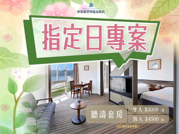 指定日期入住立即享升等海景房入住優惠,眾多日期任您挑選 每日限定5間,售完為止。 優惠專案不得合併使用,此專案團體不適用。